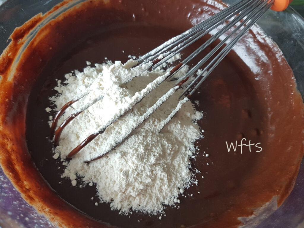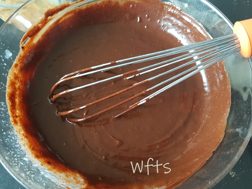 Ajouter les petits suisses, puis le chocolat, le parfum à gâteau (ou le rhum) et enfin le beurre fondu. Incorporer la farine et le sel.