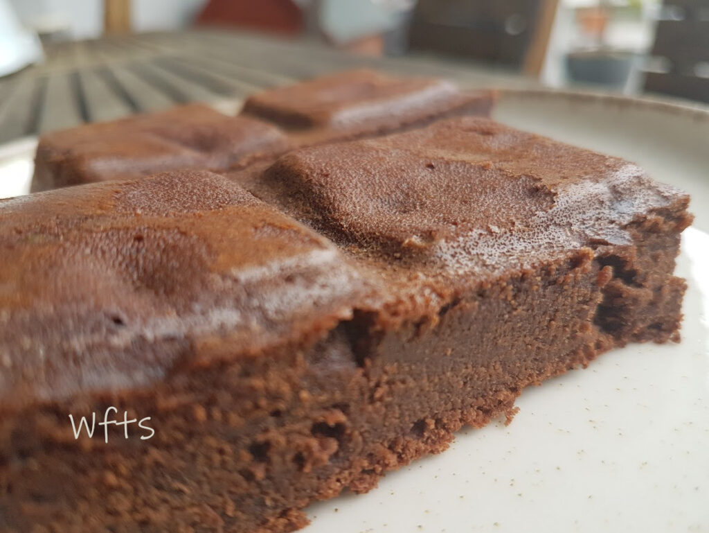 Trop facile à faire, pas de blanc à monter, pas de moule à beurrer si vous mettez la main sur un moule silicone, le plus gros effort sera sans doute de remuer et d’aller jusqu’au micro-ondes pour faire fondre beurre et chocolat. Merci à Nad qui avait proposé cette recette il y a quelques années ! Bizarrement, il a disparu petit à petit les nuits suivantes, petit carré par petit carré, presque sans que personne ne le remarque …