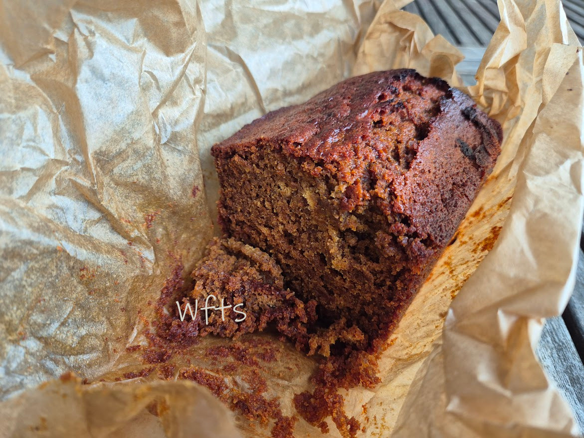 Résultat : Une petite merveille qui n’a pas fait long feu ! Même pas besoin de glaçage (même si j’avais dans mes placards une délicieuse gelée de coing de ma maman qui aurait été impeccable avec … je tenterai la prochaine fois, le coing allant très bien avec les épices de ce gâteau).