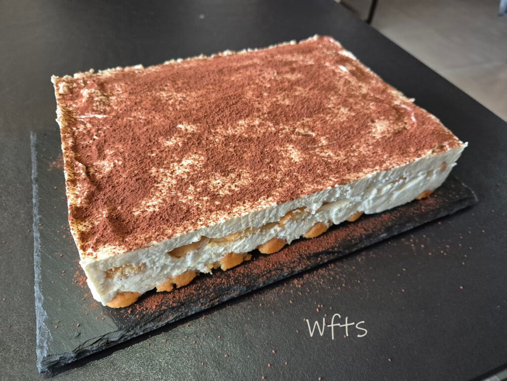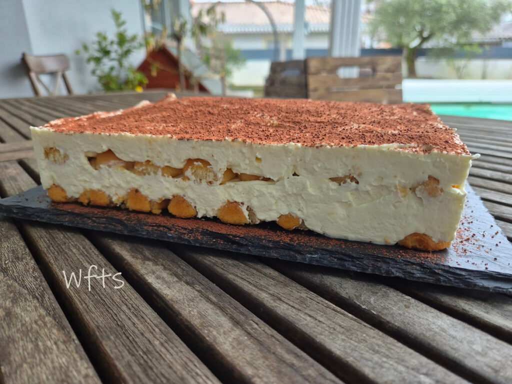 Pas exactement tiramisu, il n’y a pas d’œuf dans cette recette. Mais il ne faut absolument pas passer à côté. Vous serez étonnés par la facilité et la rapidité de sa réalisation, et par sa tenue après démoulage, ce qui n’est pas la cas lorsque le tiramisu contient des œufs si l’on n’ajoute pas de gélatine.