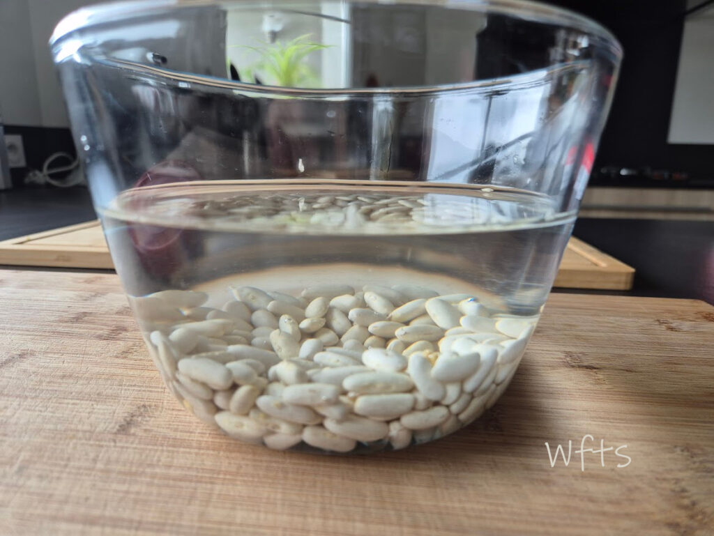 La veille, faire tremper les haricots blancs dans de l’eau froide.