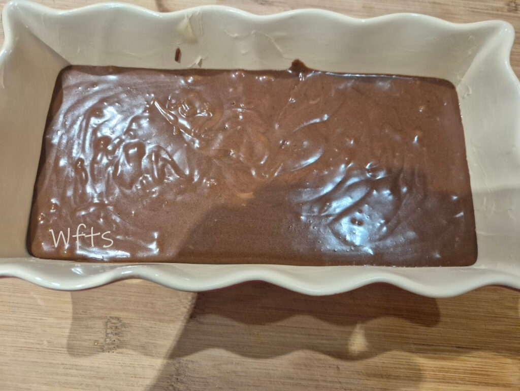 J'ai réalisé ce gâteau la première fois dans un moule carré de 20 cm de diamètre, la seconde dans un joli moule à cake pas trop long. Avec le premier, on obtient un gâteau moelleux de 5 cm d'épaisseur, idéal pour couper en petits bouts et servir avec un café. avec le second, le fondant se sent davantage, c'est ce que je conseille.