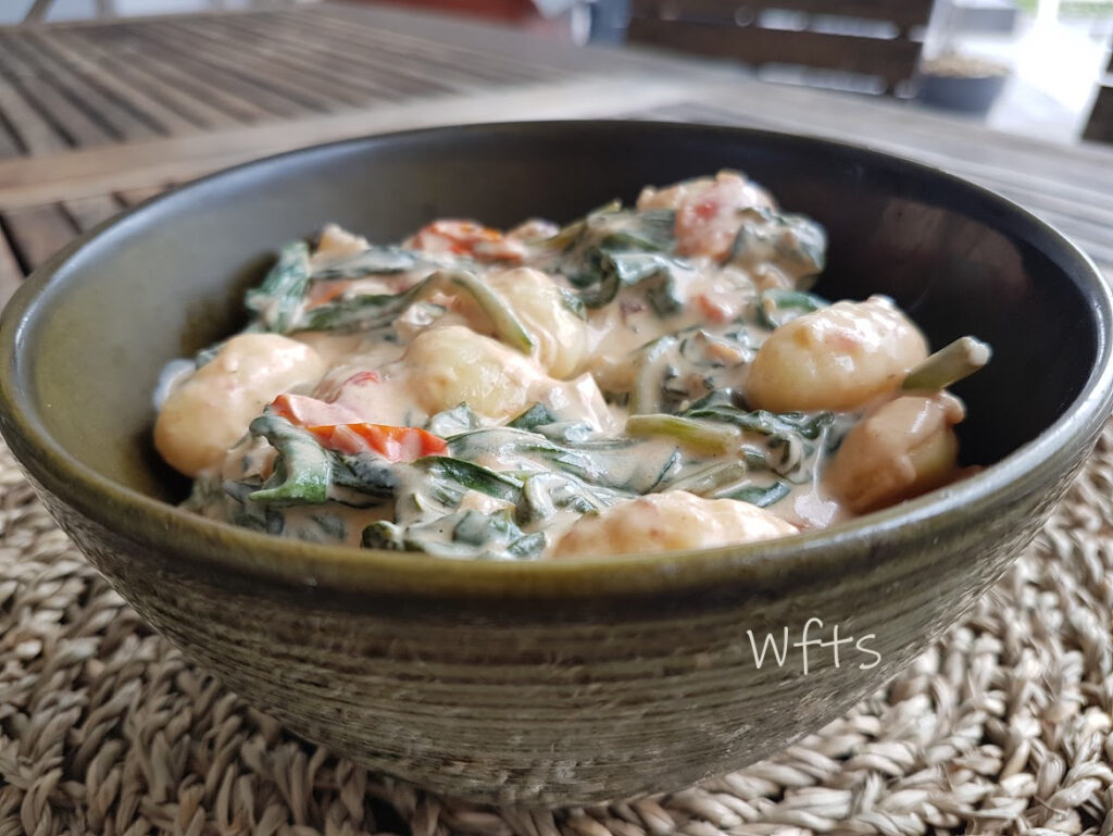 Aujourd’hui un plat bien crémeux grâce au fromage frais, qui se prépare et un temps, deux mouvements de spatule, au dernier moment si vous le souhaitez. Visuellement et gustativement réconfortant, il ne faut surtout pas passer à côté.