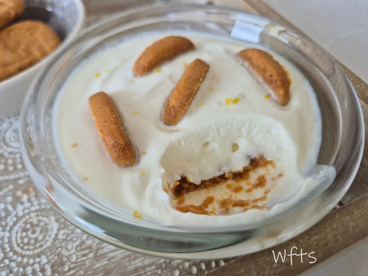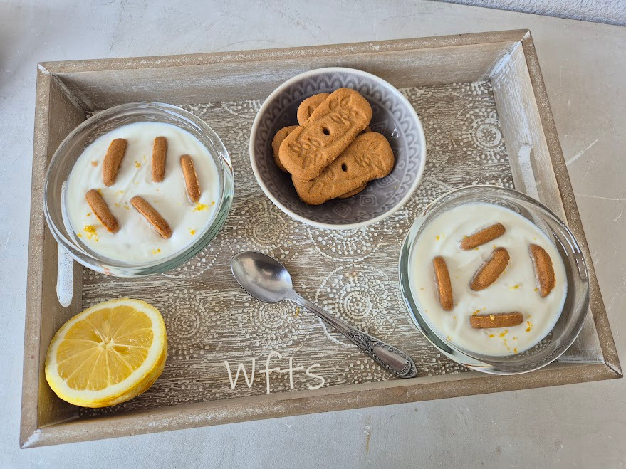 Ce jour-là, j'ai trempé deux ou trois biscuits dans la crème de chaque ramequin, vous pouvez aller jusqu'à 4 pour compenser l’acidité du citron.